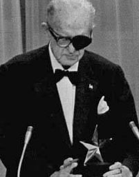 John Ford accepts the first-ever Allan Adler-designed trophy from the American Film Institute in 1973 presented for lifetime achievement